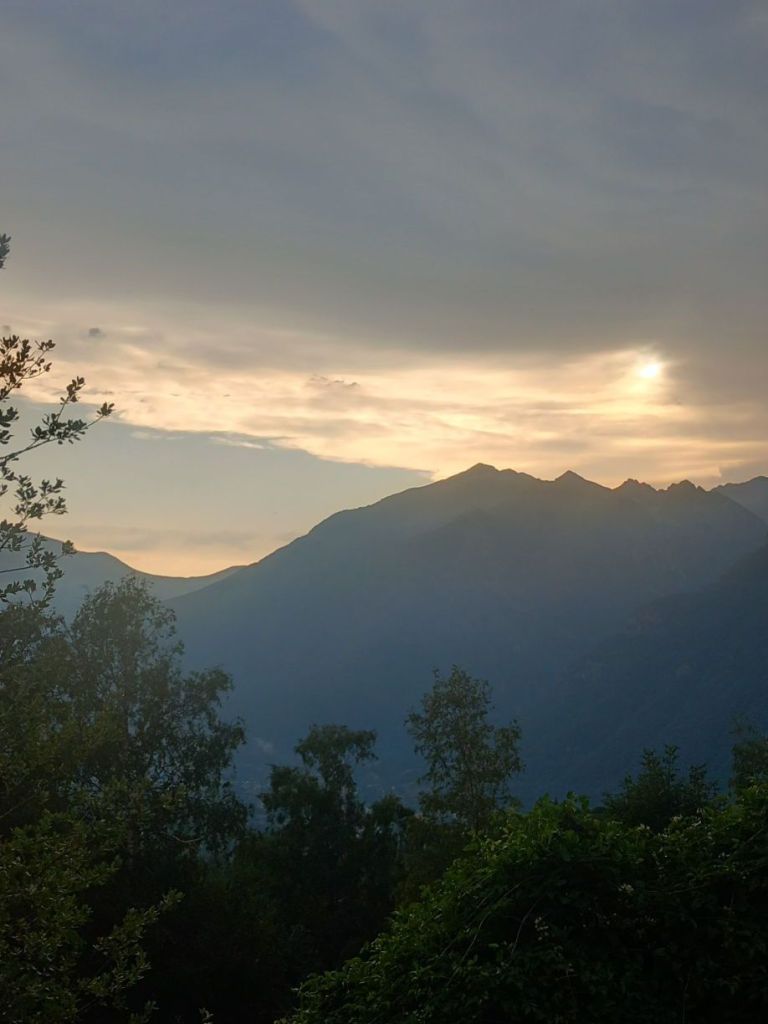 Oteando el horizonte diviso el inmenso panorama que me envuelve estos días de descanso: las frondosas montañas, las nubes espumosas y un cielo que cubre la tierra con su sombra y con su luz. Contemplo el paisaje, asombrada por la grandeza de la naturaleza: la montaña me está cautivando lentamente dejando en mí una honda serenidad.